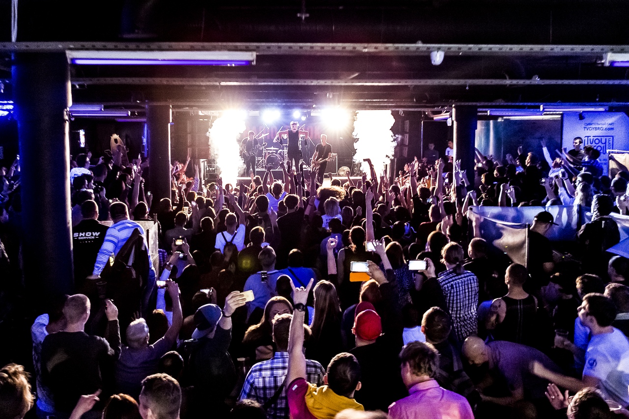 С организацией вип-зоны (обслуживаемые официантками столы + кожаные диваны/кресла) - до 700 человек (общее количество мест за столиками - до 70 человек. В рамках огороженной зоны расположение столов и диванов можно менять). Без вип-зоны - до 900 человек. В стоимость аренды зала включено стационарное световое и звуковое оборудование и его обслуживание, опытный персонал и вежливая охрана.